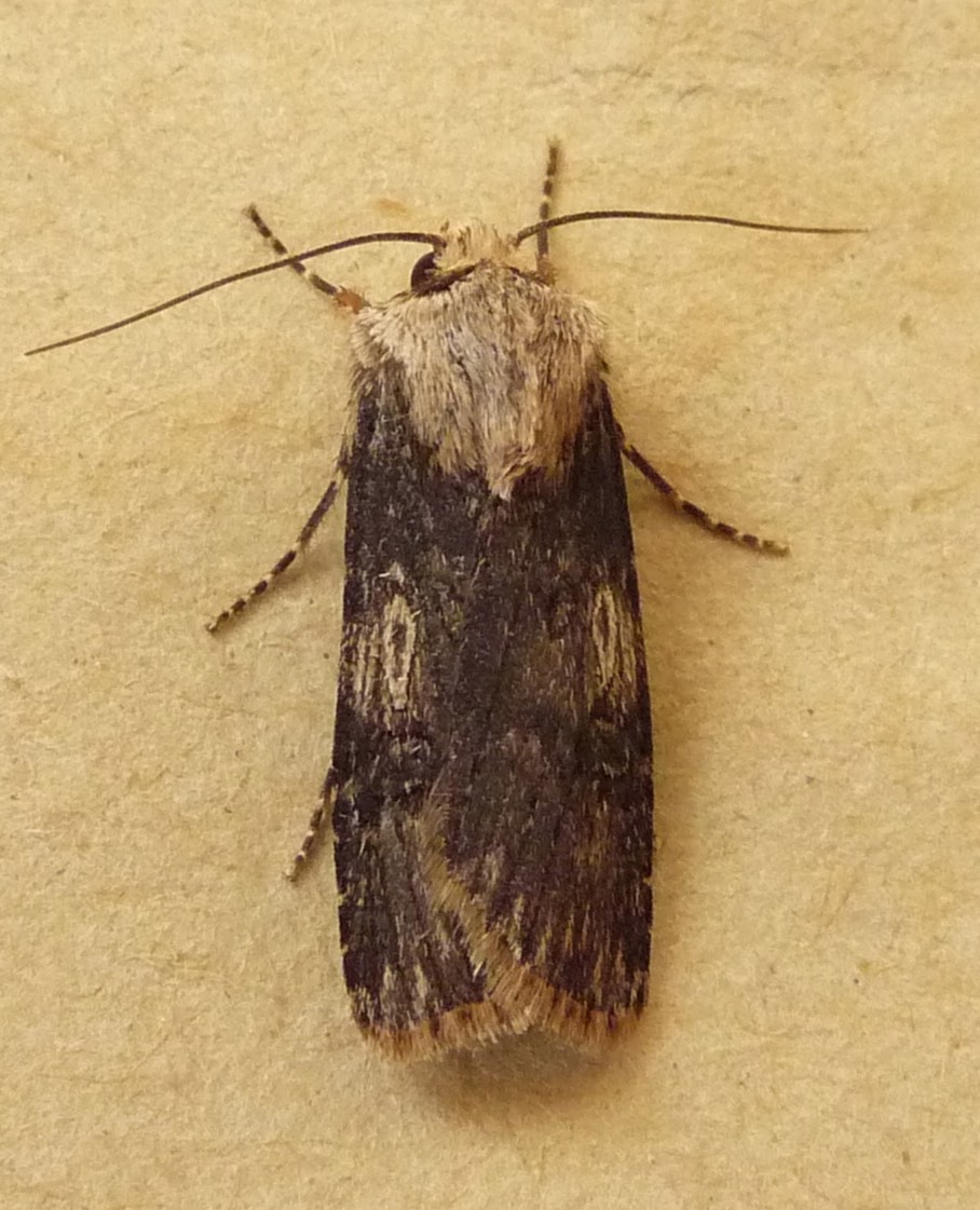 The garden trap last night produced 21 macro species and 7 micros. Large yellow underwings were most numerous, others included Black arches, Swallow prominent, Antler, Setaceous Hebrew character, Shuttle-shaped dart, Six-striped rustic and Small square spot. A single Gothic was a first for this year, although the flight period is mainly June and July according to the books.
