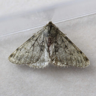 The big surprise was a Pale Brindled Beauty, also a Merveille du Jour just visible on one of the photos, Pale Pinion, Yellow and Red-line Quakers looking a bit tatty, Common Marbled Carpet, Silver Y, Spruce Carpet and Grey Pine Carpet. Micros; Carcina quercana and Acleris sparsana.